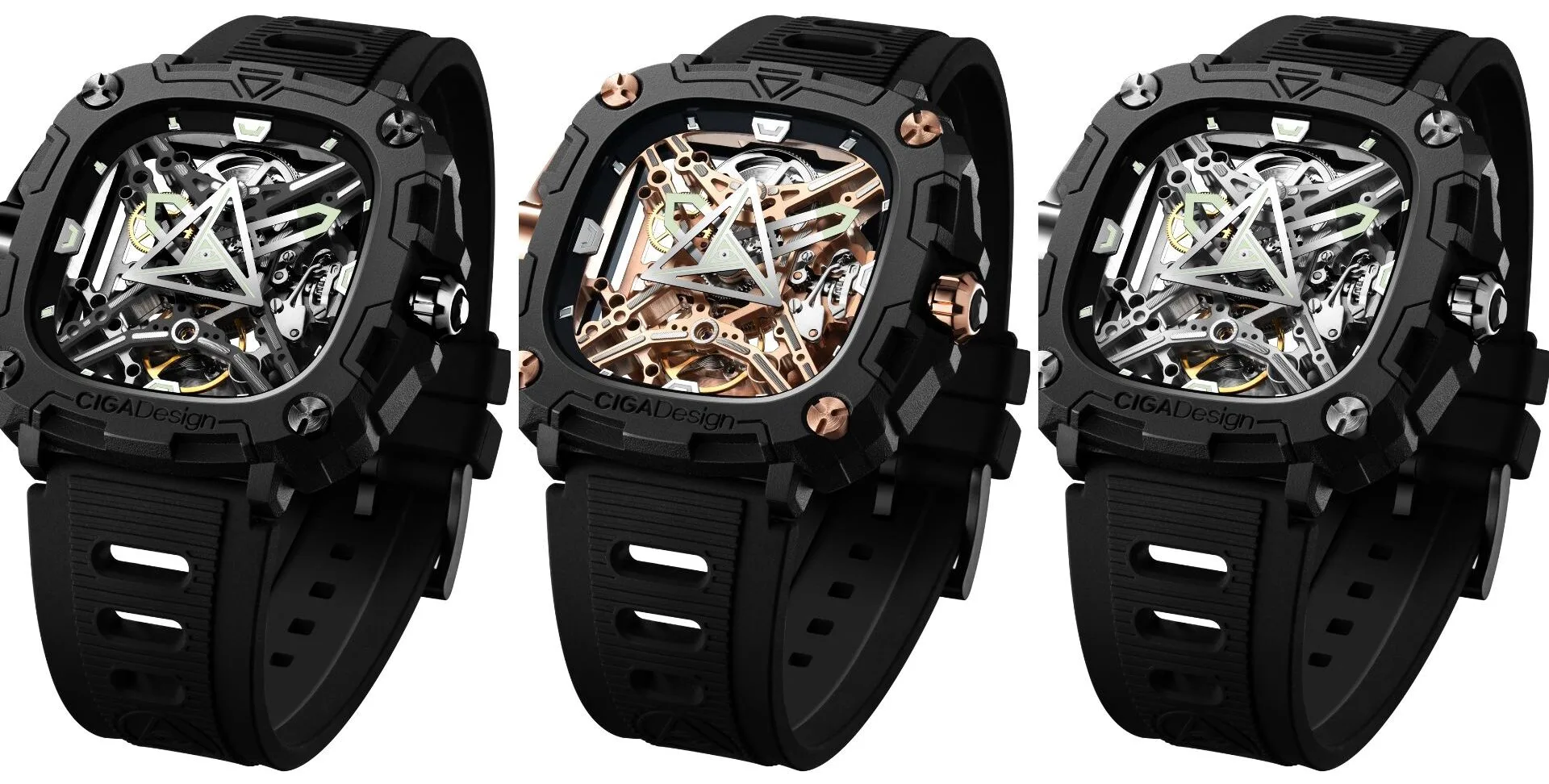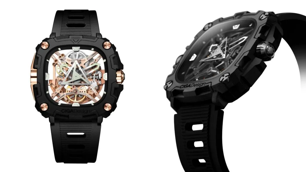 You can easily observe the inner workings of the device as well, thanks to its back-to-front transparent skeleton design. The genius design choice allows you to see into the watch and through it as well, providing a view of both the signature X-shaped skeleton and the Eye of Horus triangle that doubles as a second watch hand.