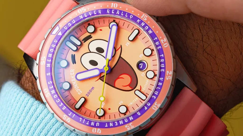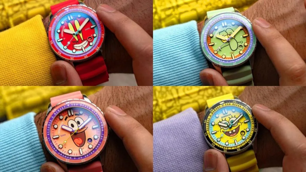 Starting off with the very face of the timepiece, each dial variant boasts its respective character’s distinct colour scheme and face: Spongebob Yellow, Patrick Pink, Squidward Green, and Mr. Krabs Red. However, these aren’t just for show, as these dials come in a multi-layered construction that boasts luminous accents that can be found on the numbers, indices, and even character features.