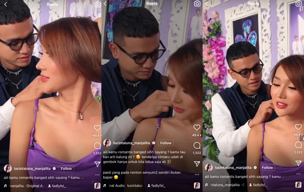 It didn’t stop just there, guys! Lucinta also shared another video showing Fadly wearing her a necklace. She remarked, “You’re so romantic, dear! You know what this necklace means? It symbolises that my love is locked. just for the two of us. I bet those who are watching are smiling to themselves, they’re also happy for us.”