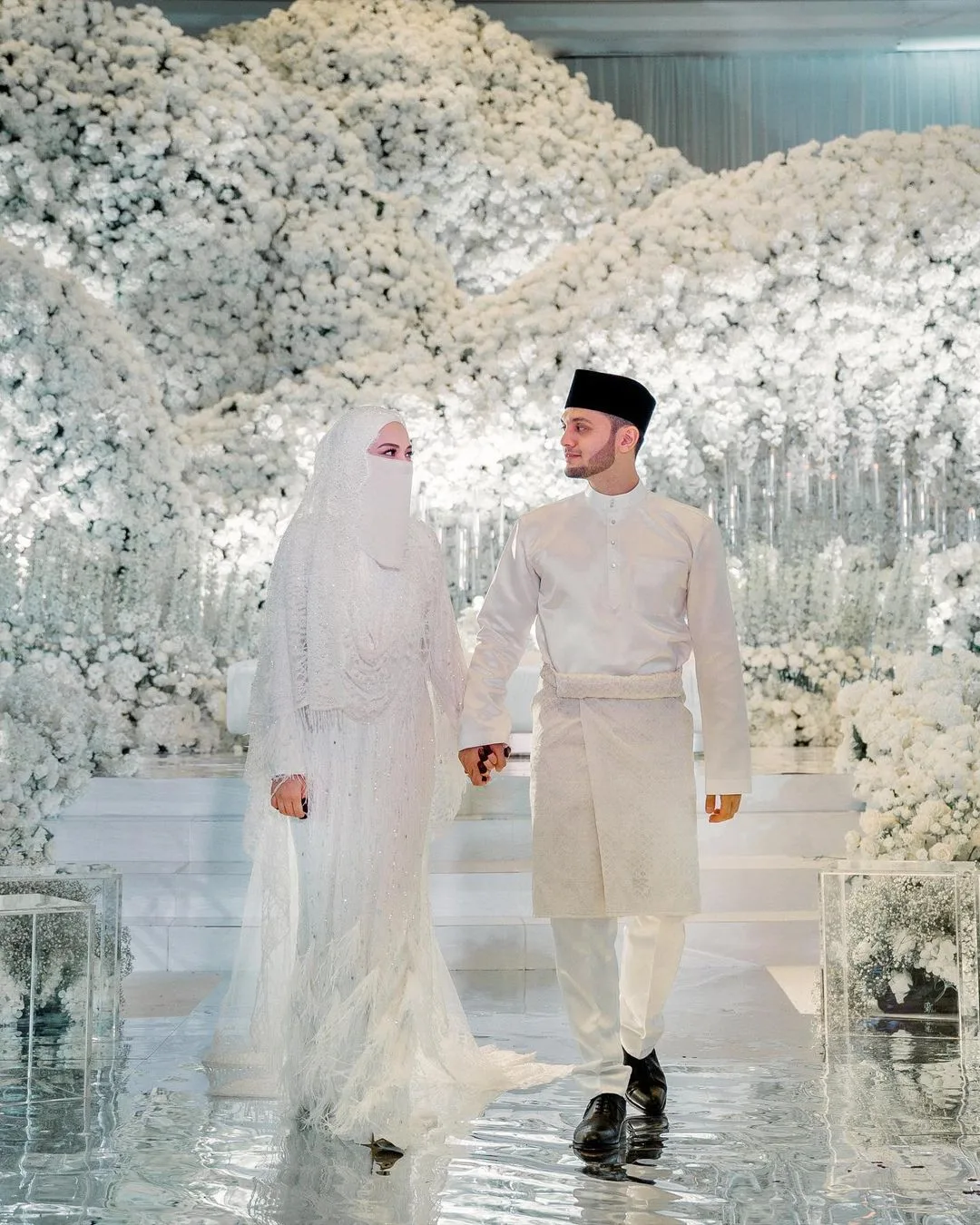 Malaysian singer Haqiem Rusli officially tied the knot with his partner, Anis Sofea, in a traditional akad nikah ceremony held at the Raja Haji Fi Sabilillah mosque in Cyberjaya, last Friday (19th November). Their wedding reception took place that same night (themed “Wedding In The Sky”) at the skyGlass Designer Event Hall Cyberjaya. Reportedly, the cost for the wedding ceremony is estimated to be more than RM7 million.