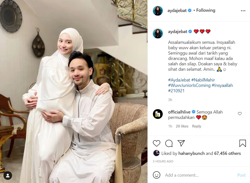 Ayda Jebat updated on her Instagram on Tuesday (21st September) that she had to undergo surgery to give birth to her baby girl, Ana Nayla binti Ahmad Nabil. According to the “Parah Parah” songstress, she gave birth to her first child surgically a week earlier than the planned date.