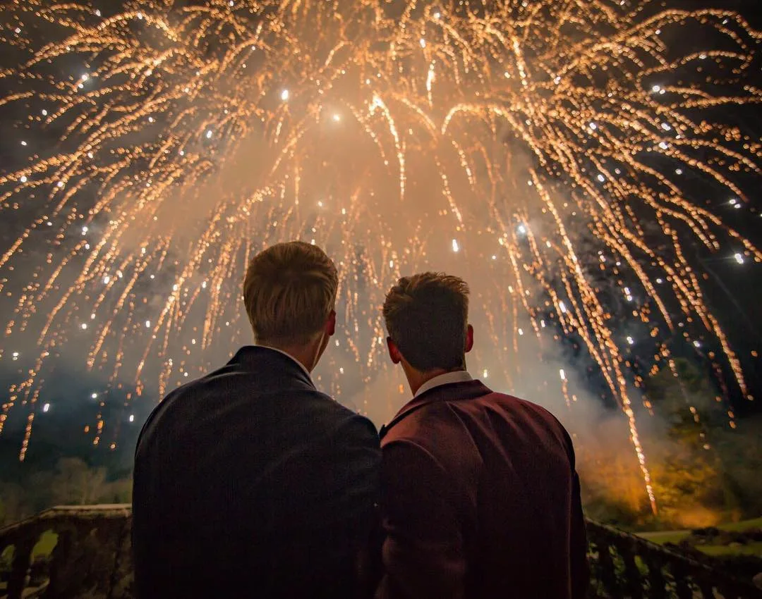 Hours later, he shared a photo of the couple with their backs against the camera, decorated with fireworks in the background.