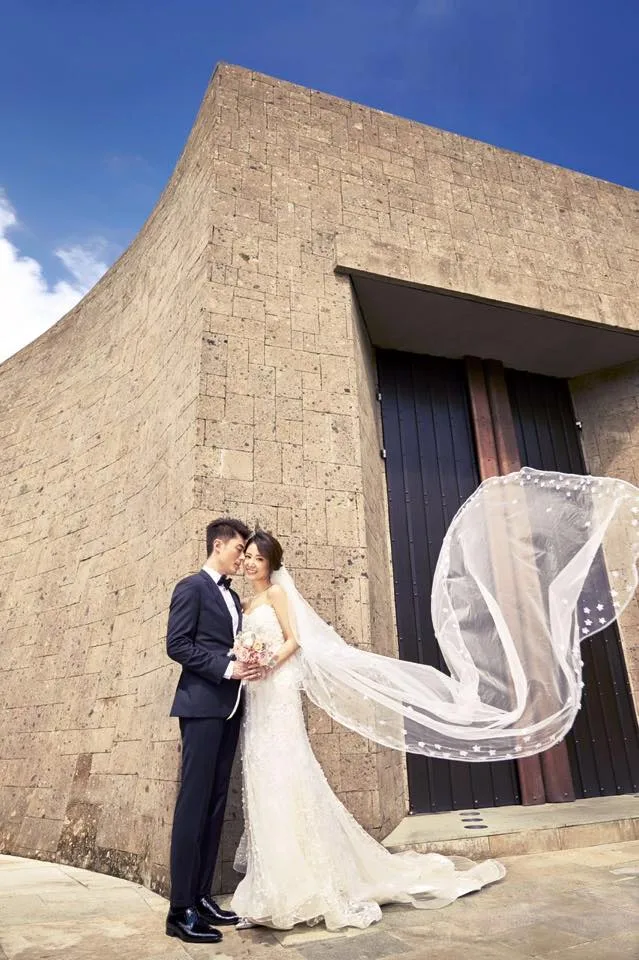 The couple dropped several pre-wedding photos, showing the 2 in gorgeous wedding attire via fashion magazine VOGUE Taiwan. The romantic photos were shot a few days before their big day in Bali, along with Ruby Lin’s maid of honour, TV host Tiffany Hsu.