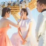 When exchanging their wedding vows, the groom kissed Ady’s forehead and said, “I want to look after you for an entire lifetime, pamper you for an entire lifetime, and I want you to be a blissful Mrs. Chen.”