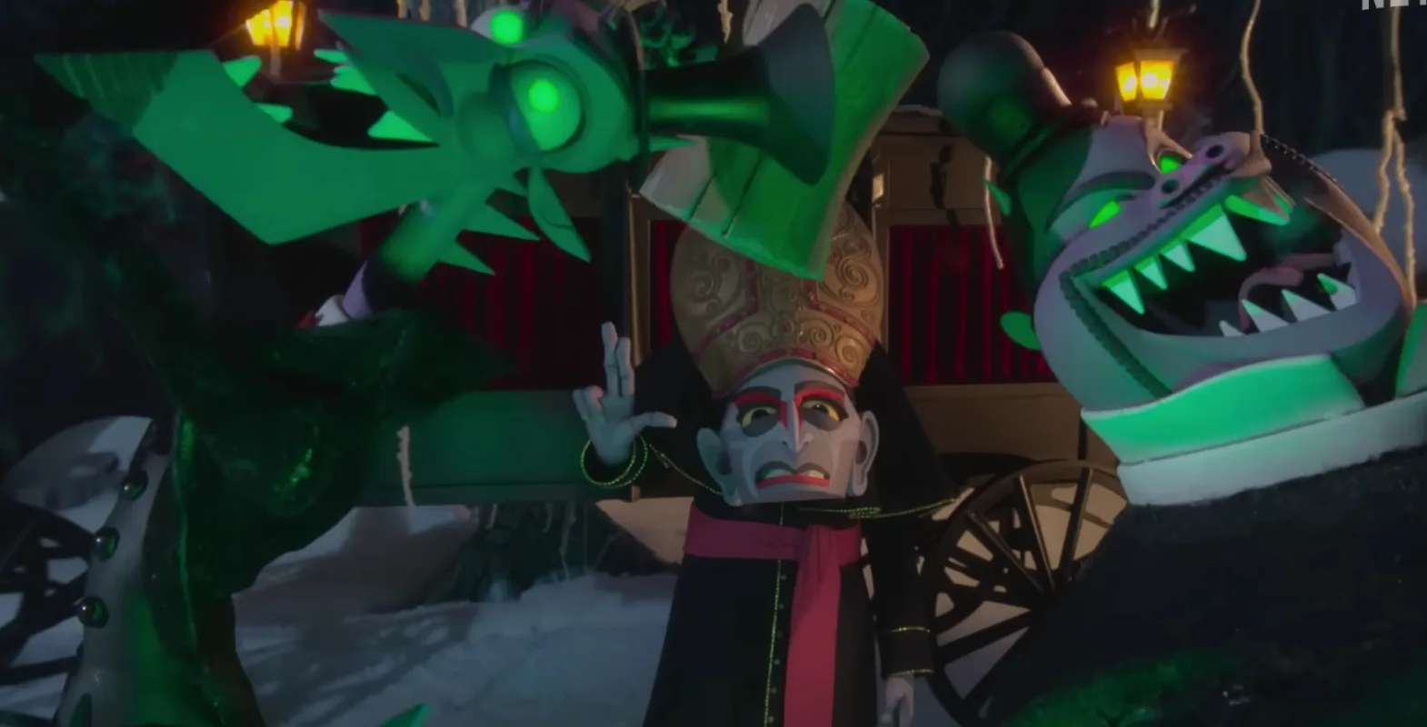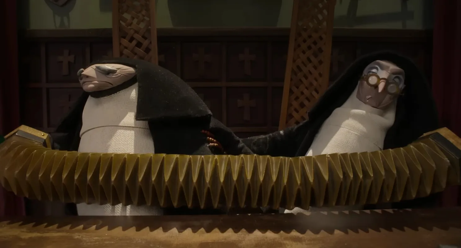 Speaking of the aesthetics, we have to give utter props to the Netflix Animation team, Gotham Group, Peele’s Monkeypaw Production and company! It took them a while but they pulled together to produce a gorgeously animated film with a distinct art style that marries industrial grime with ethereal spooky ectoplasm! There’s just so much personality dripping in their character models that are reflected in their clothing, facial features and body shapes. There’s a magic to Selick’s work that is rather hard to replicate. Selick’s signature claymation style approach is heavily featured with moments of cutout and silhouette animation being used in scenes to add a layer of atmosphere.