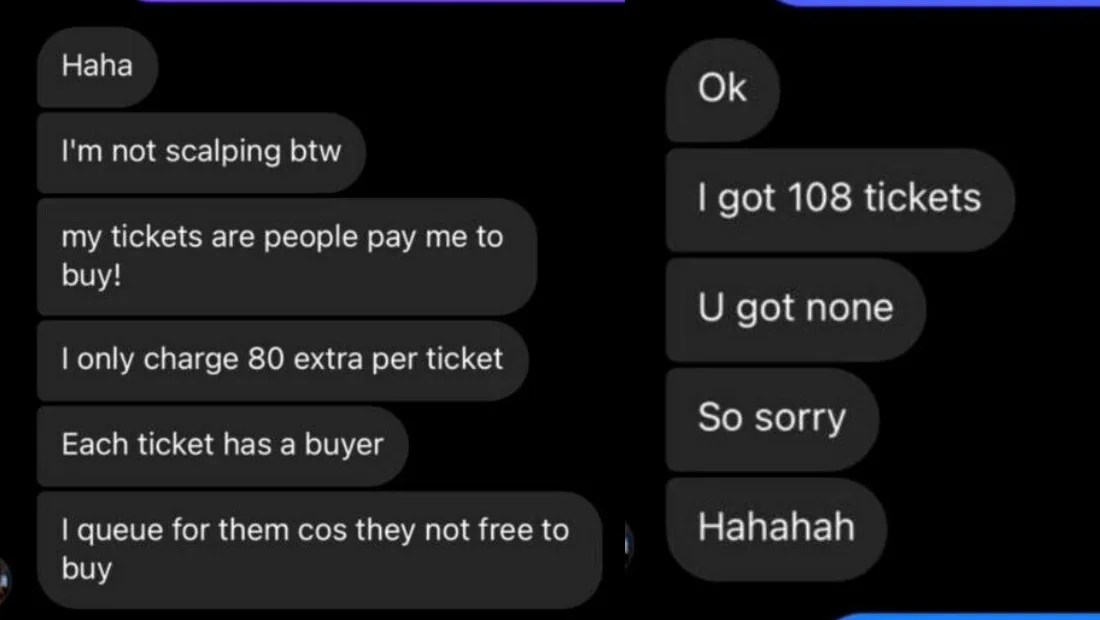 We reached out to Reneesha, who told us that upon seeing the person’s IG Stories, she confronted the latter to which the reseller replied that she “isn’t a scalper” and that she’s only running a ticketing service, charging RM80 per ticket for the purchasing fee. She continued to explain that she “only bought tickets for 13 buyers who wanted to attend with friends.” However, she did not provide any further proof of her innocence.