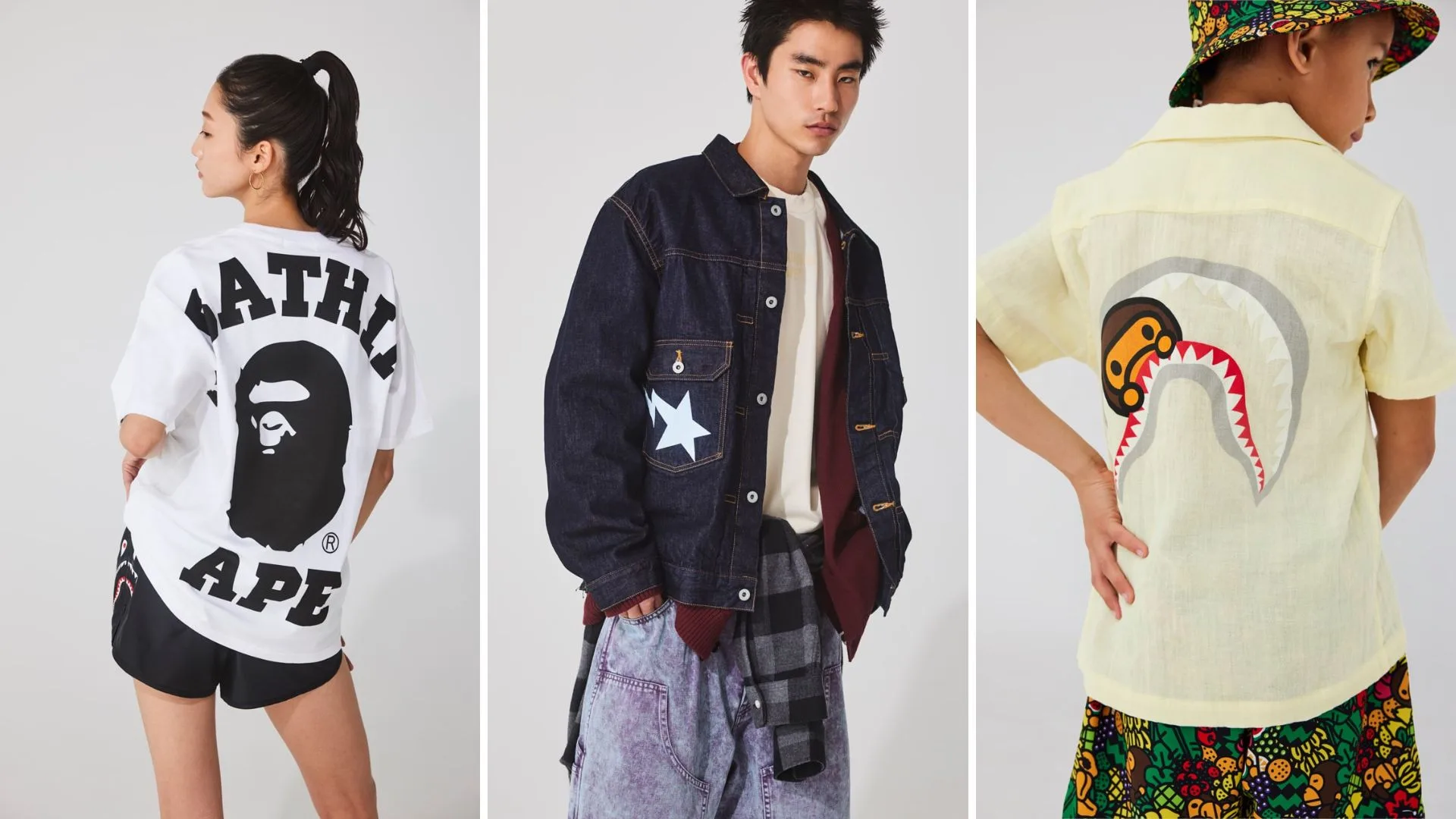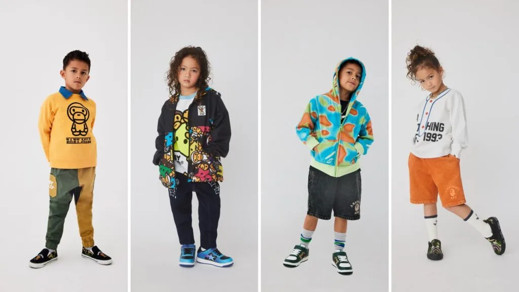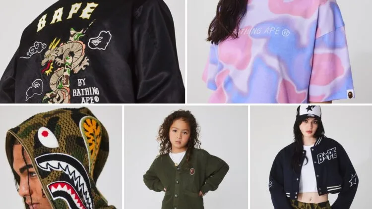 Deriving inspiration from skateboarding, street dance, BMX flatland, soccer, and college lifestyles, this collection showcases the creative zeal of street culture and has been categorised into three major themes: “WEEKEND CHILLIN,” “GREEK LIFE,” and “STREET VIBES.” Though these outfits lean towards casual design, you can still find BATHING APE’s signature outerwear staples as well as sporty but still fashionable styles for men, women, and children.