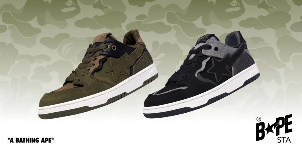 But for shoe collectors and lovers alike, the 2024 Spring/Summer Collection includes the all-new BAPE SK8 STA models, which feature an upgraded colour-blocked construction in green/brown and black/grey.