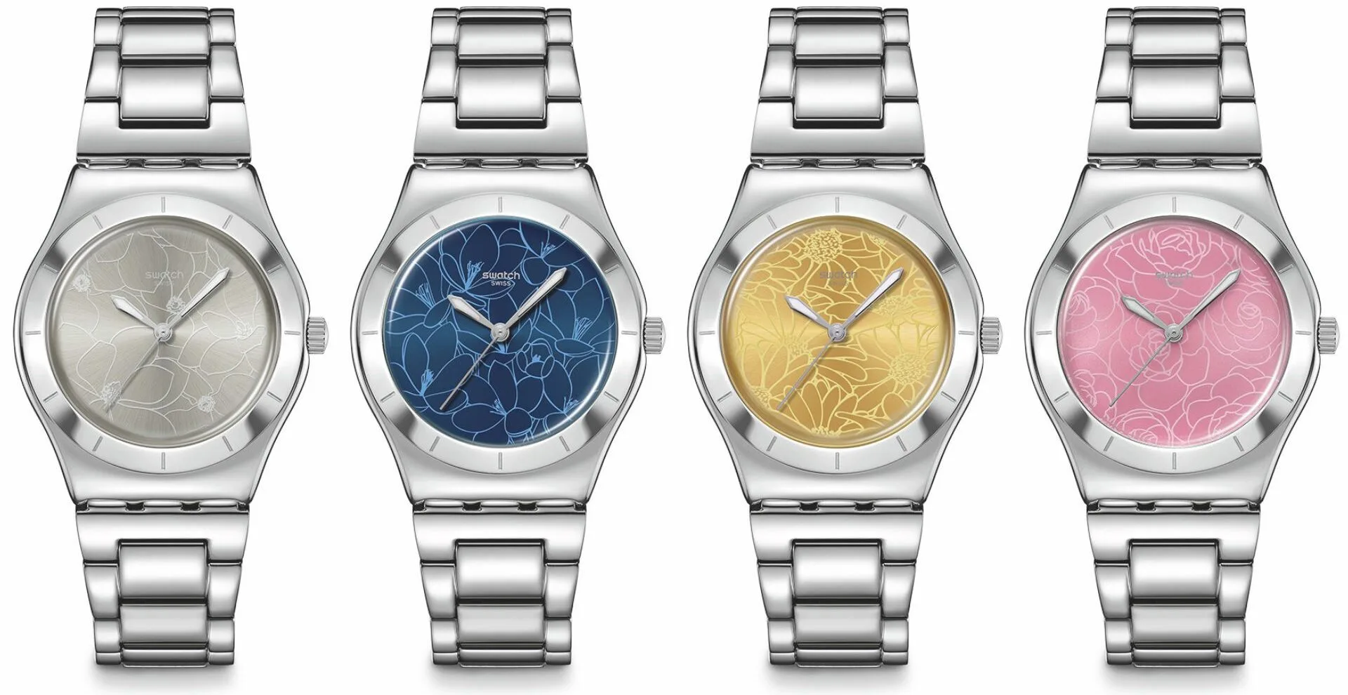 This collection blooms with style as it blends the soft beauty of four much-loved flowers from across the world, with the strength and durability from Swatch’s IRONY line.