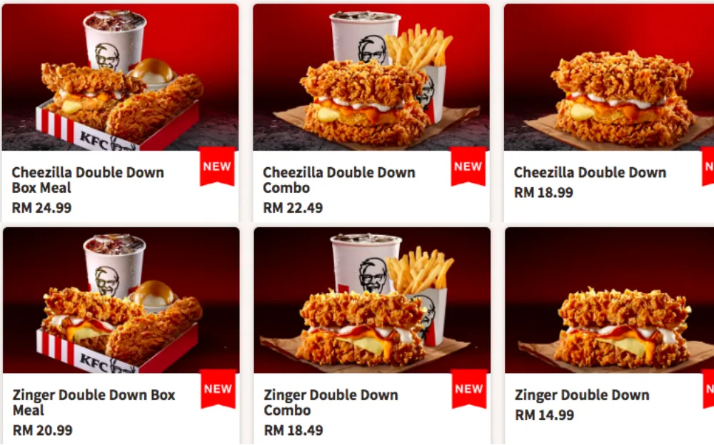 The Zinger Double Down was first launched in Malaysia as a limited-time menu item back in 2012. We’ve also tried the fried mozzarella chesse patty previously and it is seriously belly-good. It’s about time KFC considers making these permanent on its menu. Both Double Downs come in À la carte, Combo, and Box Meal options. Take a look at the prices below: