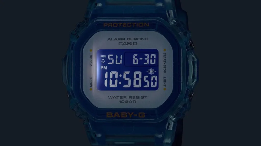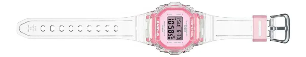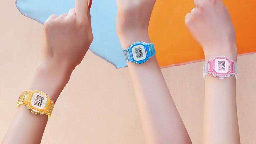 Available in three different colours, pink, yellow, and blue, each variation of this timepiece embodies the Y2K fashion palette. However, though it’s largely made of transparent material, the BGD-565 features some translucent resin for some variety. This design choice creates a two-tone look that makes the watch look clean without being monotonous.