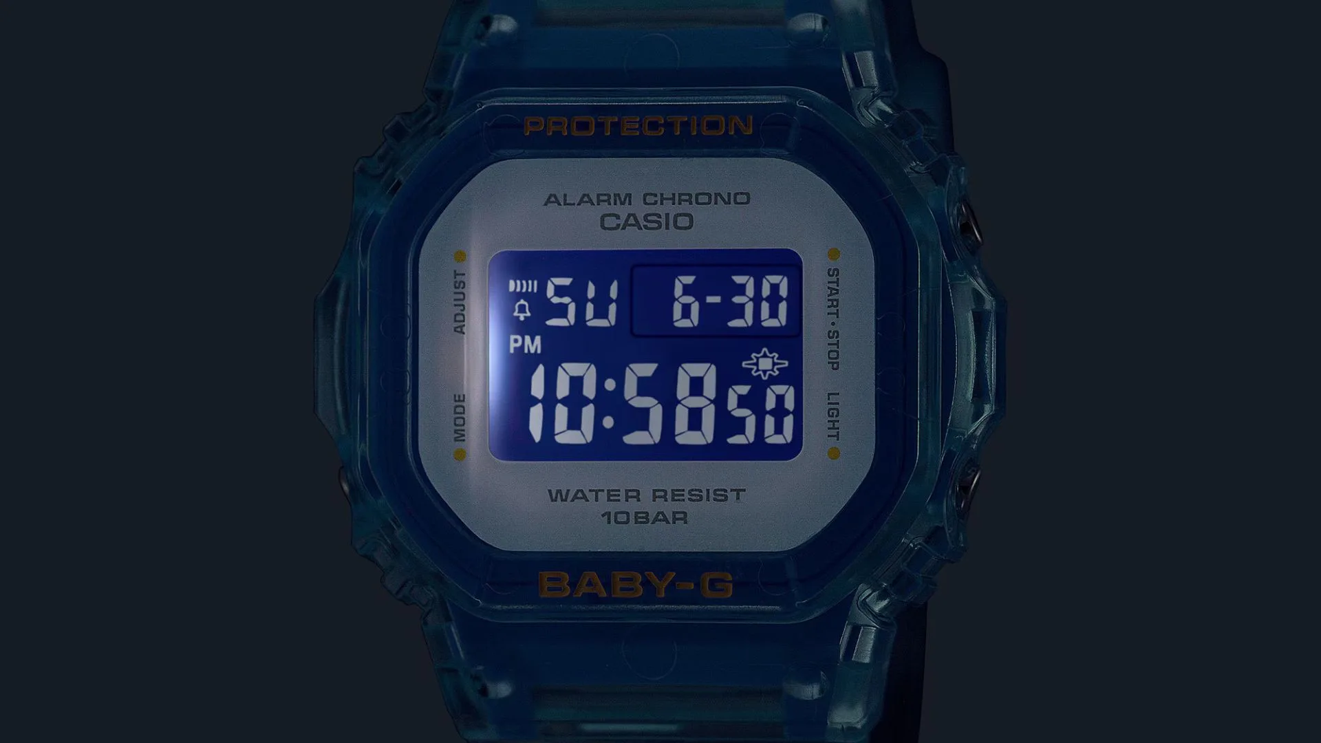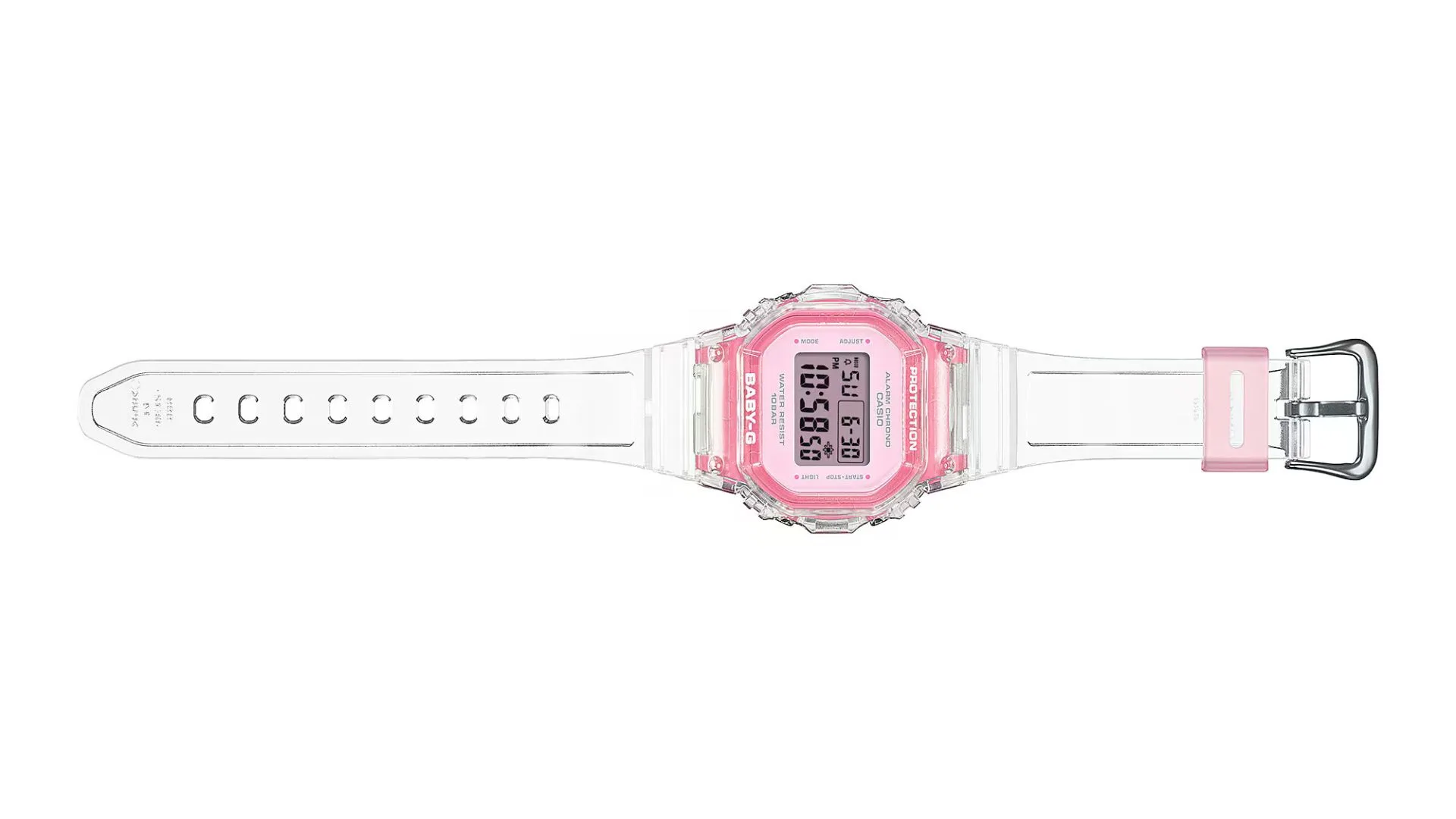 The BGD-565 features the iconic shape of a compact watch in a refreshingly translucent design, making it a versatile accessory for all. The whimsical see-through design blends clear resin exterior components with a tinted resin case to create a delightful blend of enticing colour and refreshing translucency. Savour this fantastic new watch for the summer.