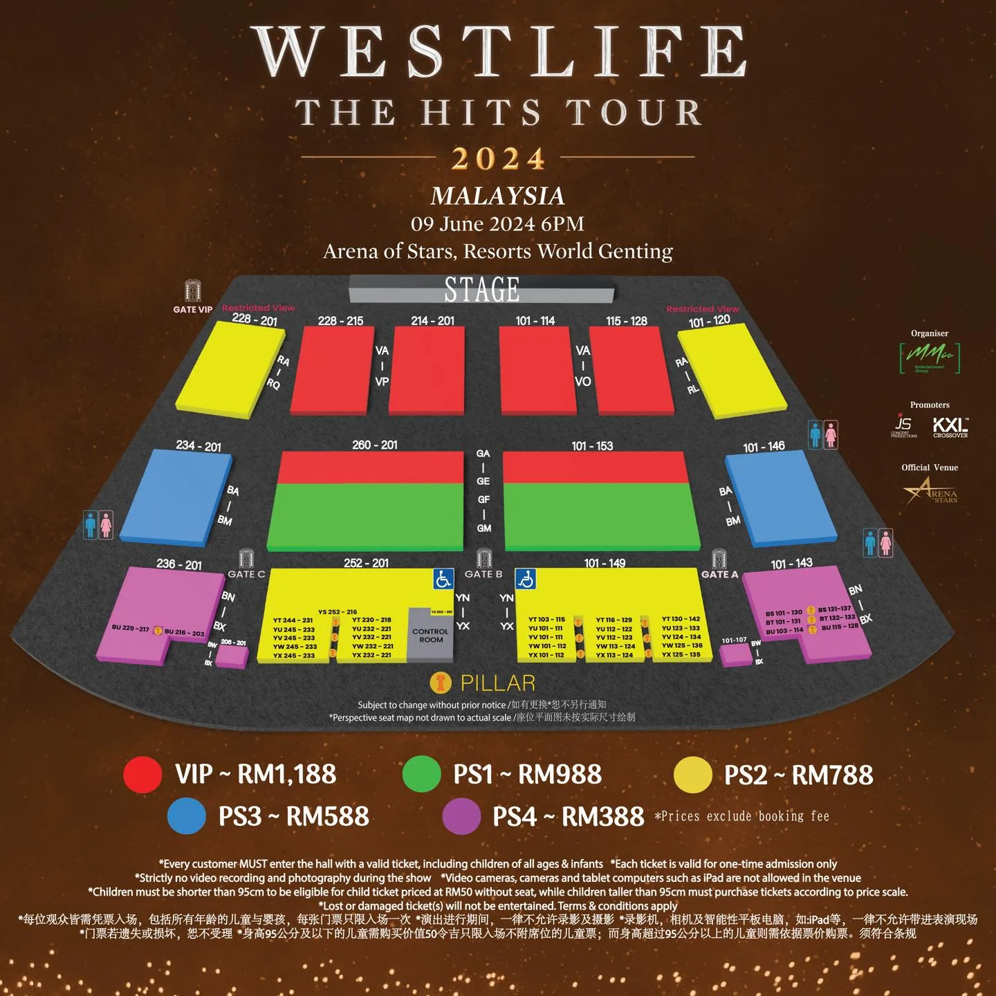 - Ticketing: RM1,188 (VIP), RM988 (PS1), RM788 (PS2), RM588 (PS3) and RM388 (PS4)