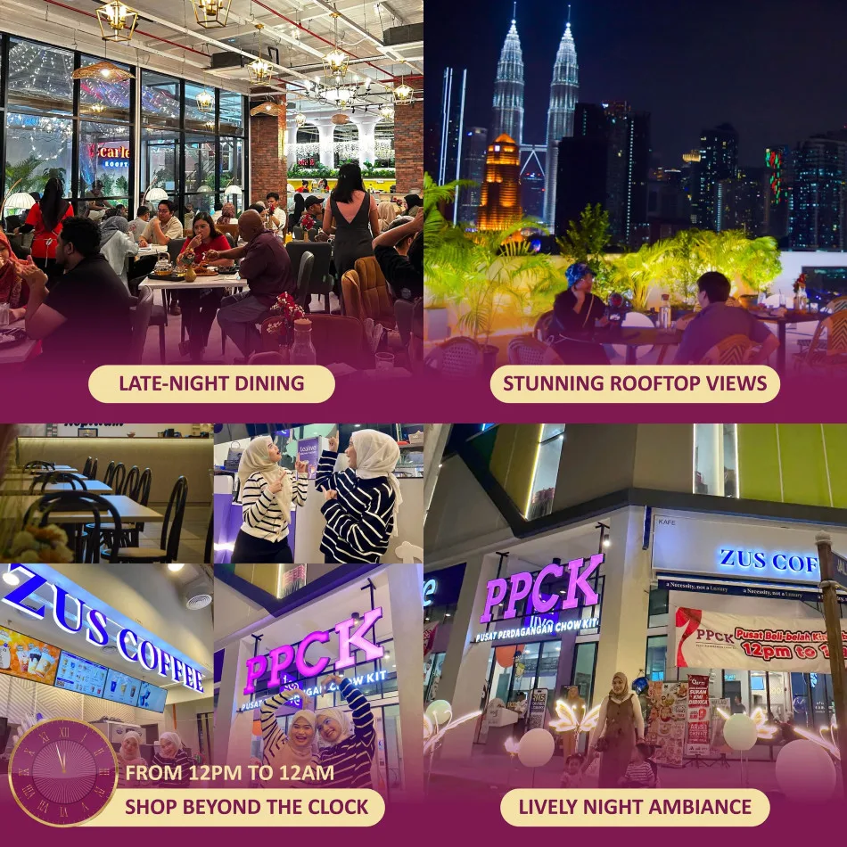 If you’re planning to hang out a little later than midnight then you’d be happy to know that the Scarlet’s Rooftop restaurant at the shopping centre is open until 1am. So what are you waiting for? Shop and dine at PPCK, located at Lorong Haji Hussain 1, Kuala Lumpur which is a 5-minute walk from Chow Kit Monorail Station!