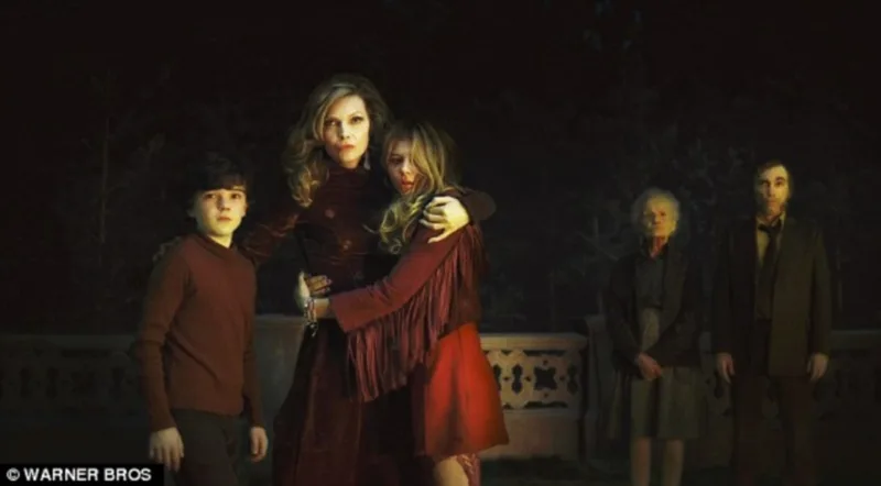 Also residing in the manor is Elizabeth’s ne’er-do-well brother, Roger Collins, (Jonny Lee Miller); her rebellious teenage daughter Carolyn Stoddard (Chloe Moretz); and Roger’s precocious 10-year-old son, David Collins (Gulliver McGrath). The mystery extends beyond the family, to caretaker Willie Loomis, played by Jackie Earle Haley, and David’s new nanny, Victoria Winters, played by Bella Heathcote.
