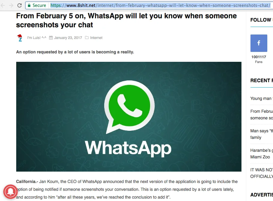 While it’s certainly worrying (hey, we all screenshot stuff once in a while especially when we want to share an epic typo or autocorrect, or a funny conversation), WhatsApp users need not hyperventilate just yet as the supposed app update is not happening. For starters, 8Shit prides itself in being a satire website. In their “About” page, it states: