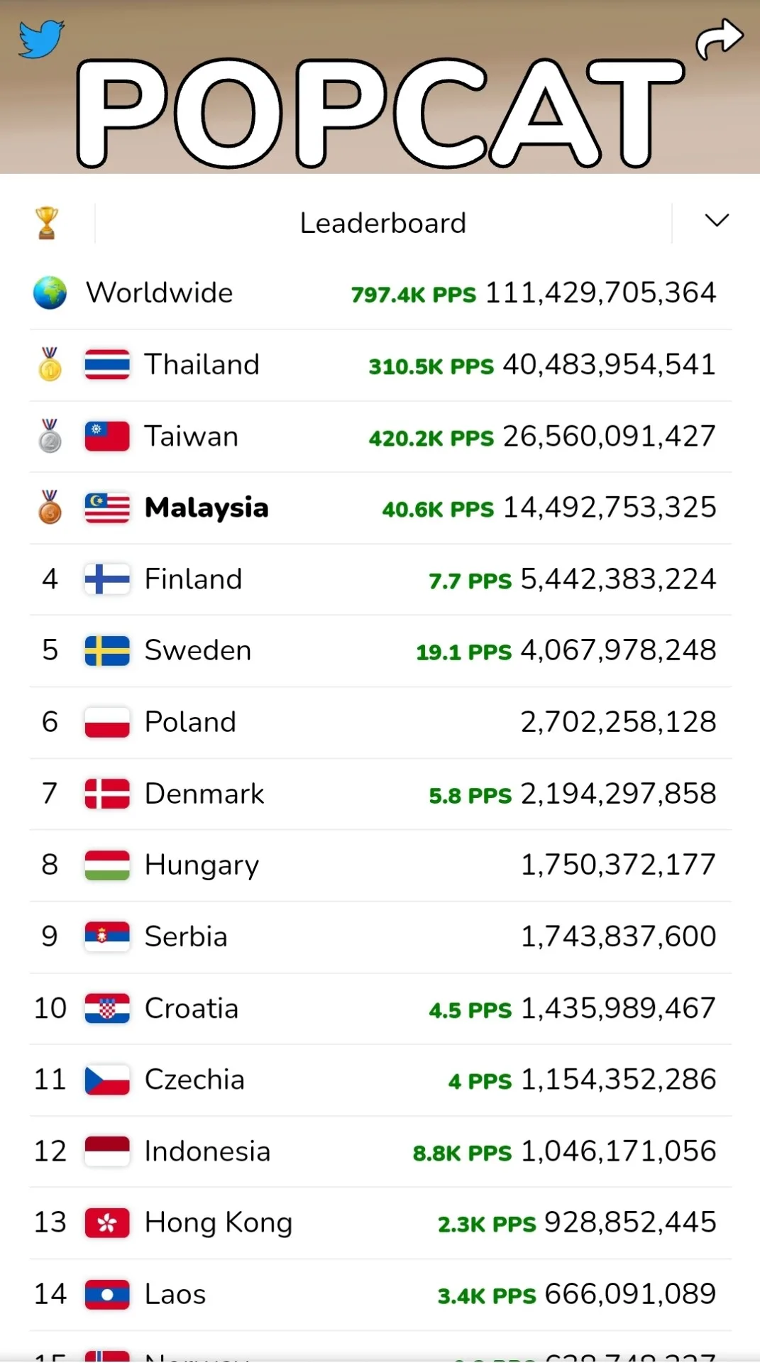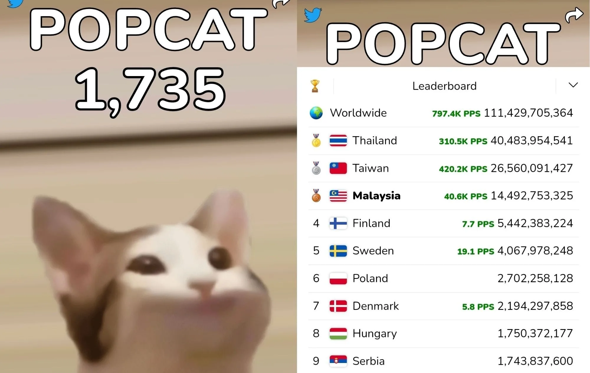 For those who are new to this game, POPCAT is a popular clicking game where you click (on your computer) or tap (on your phone) a cat named Oatmeal for points. Due to its simple yet useless, nature where all you’d have to do is to tap on the cat, it seems like our country is hunting for gold!