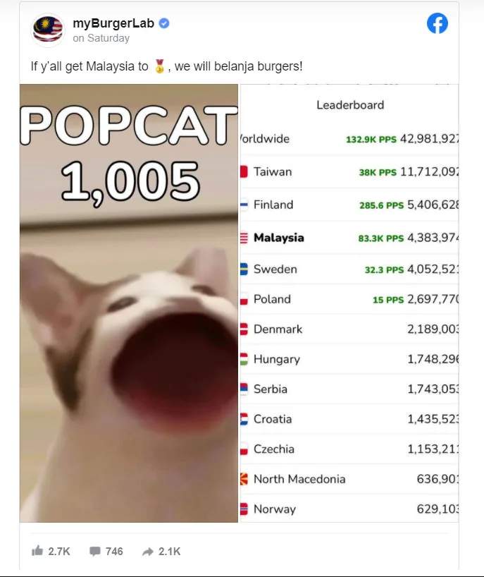 When it comes to Malaysia’s fighting spirit, there’s no match for it, be it for cheering on our athletes during major sports events or even debating with Singaporeans on whose food is tastier! Well, now, with the Olympics being done and dusted with many of us, awaiting eagerly for the 2024 Olympics to commence, Malaysians have definitely brought a new meaning to online competitions by immersing themselves in the addictive game of POPCAT.