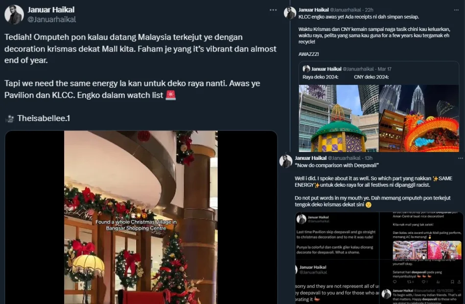 The man also brought up the time when certain malls skipped the Deepavali celebrations and went straight to Christmas in 2023. His post went viral and sparked debate among netizens. Some agreed with his points, saying that each holiday’s mall decorations should be just as festive and extravagant. Others argued that this may be a case of sponsorship, as establishments can also profit from Christmas and year-end sales, hence the attractive decorations.