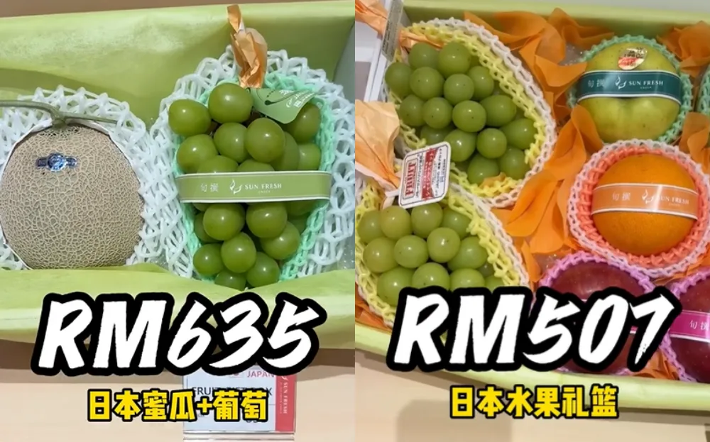 A Xiao Hong Shu account named ‘I Love Malaysian Food’ (我爱大马美食), shared a look at the fruits’ prices at the Sun Fresh store in Seibu at The Exchange TRX. The speciality store offers an exclusive selection of fresh fruit flown directly from Japan. Right off the bat, the prices of the fruits were over the top, like the set of Japanese rock melon and Shine Muscat grapes costing a whopping RM640. Another gift set costs RM507— but you will get more variety with four types of fruits.