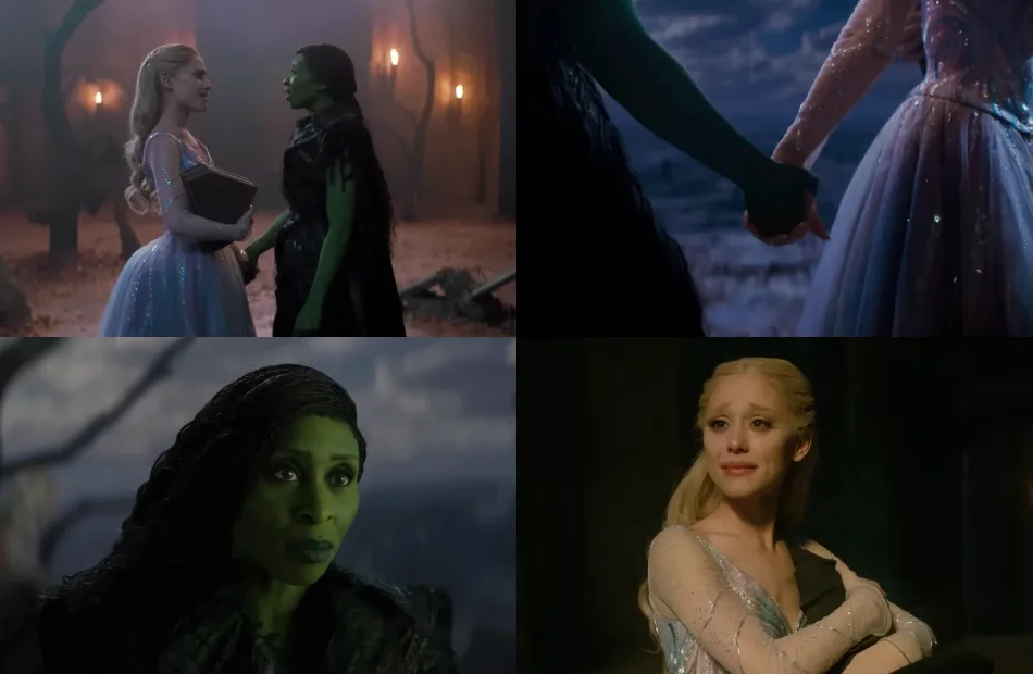 Now, moving on to another highlight. One of our favourite moments actually takes place during the iconic melting scene. In the original stage musical, Elphaba leads Glinda to a hiding spot before she is chased down and “killed” by Dorothy. Glinda watches as the scene unfolds, seeing only the silhouette of her friend as she appears to die. In “Wicked: For Good”, the scene takes its time to really hit us in the gut. After the emotional ballad “For Good”, Elphaba (played by Cynthia Erivo) leads Glinda (played by Ariana Grande) to what appears to be a closet, reassuring her that everything will be alright. Before parting ways, the two express their love for each other.