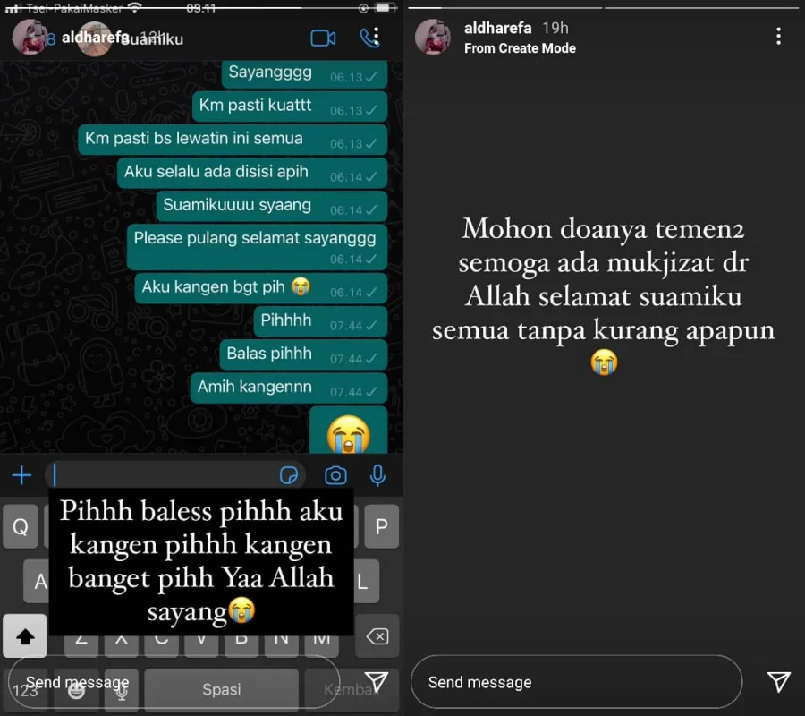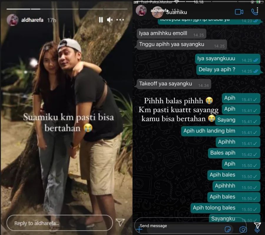In her subsequent Instagram Story update, Aldha shared the final text conversation she had with her husband prior to his departure. Initially, Ocky had asked her to wait up for him not long before his flight had taken off. She tried to reach him again an hour later, but the texts were not delivered.