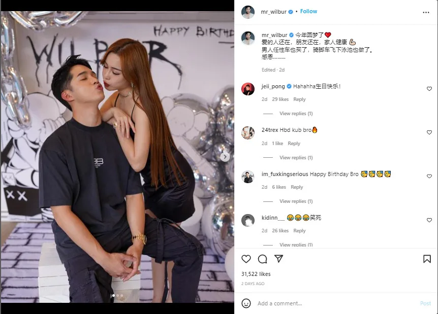 Wilbur and his wife, fellow influencer Diorlynn Ong (翁依玲) went all out for Wilbur’s 26th birthday. In addition to being gifted his dream car by Diorlynn, Wilbur got to enjoy an amazing pool party and had a birthday kiss from none other than Charles Tee (拿督赛) himself!
