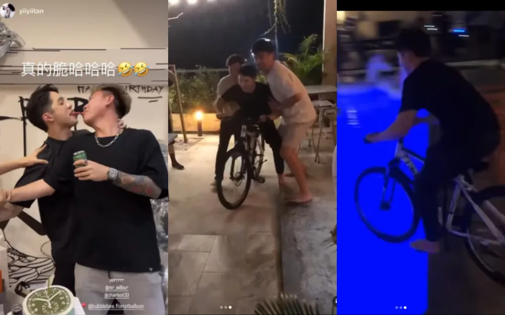 As the night went on, the party got much wilder. Charles Tee got some tongue action with the birthday boy, much to the amusement of other guests. The other influencer’s face turned red and we aren’t sure if it’s because of the drink or his kiss with Wilbur. Additionally, Wilbur got to fly straight into his pool on a bike, which he was very excited about.