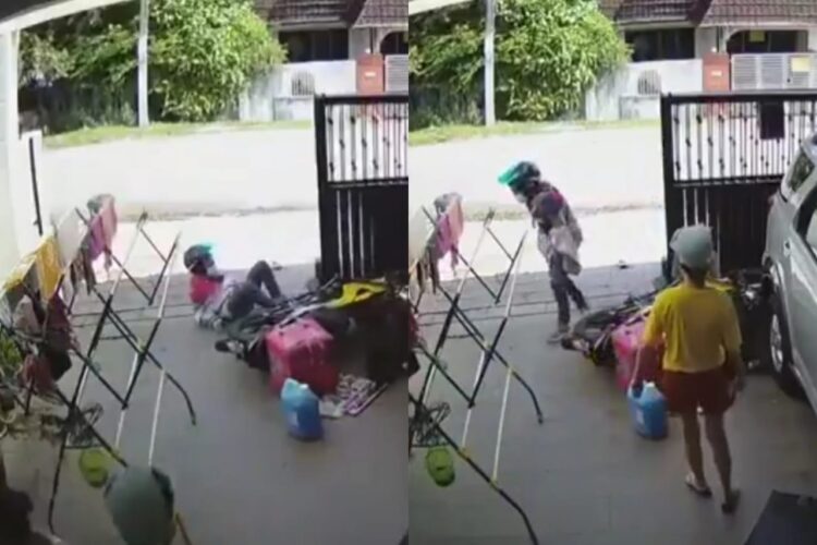 Recently a video went viral on social media that showed a female delivery rider who suddenly crashed into a house gate in one residential area. The delivery rider was said to lose control of her motorcycle to flee from a wild dog who had been chasing her. When the collision happened, two ladies were seen conversing in front of the house when suddenly the motorcycle slammed into the gate of the resident’s house.