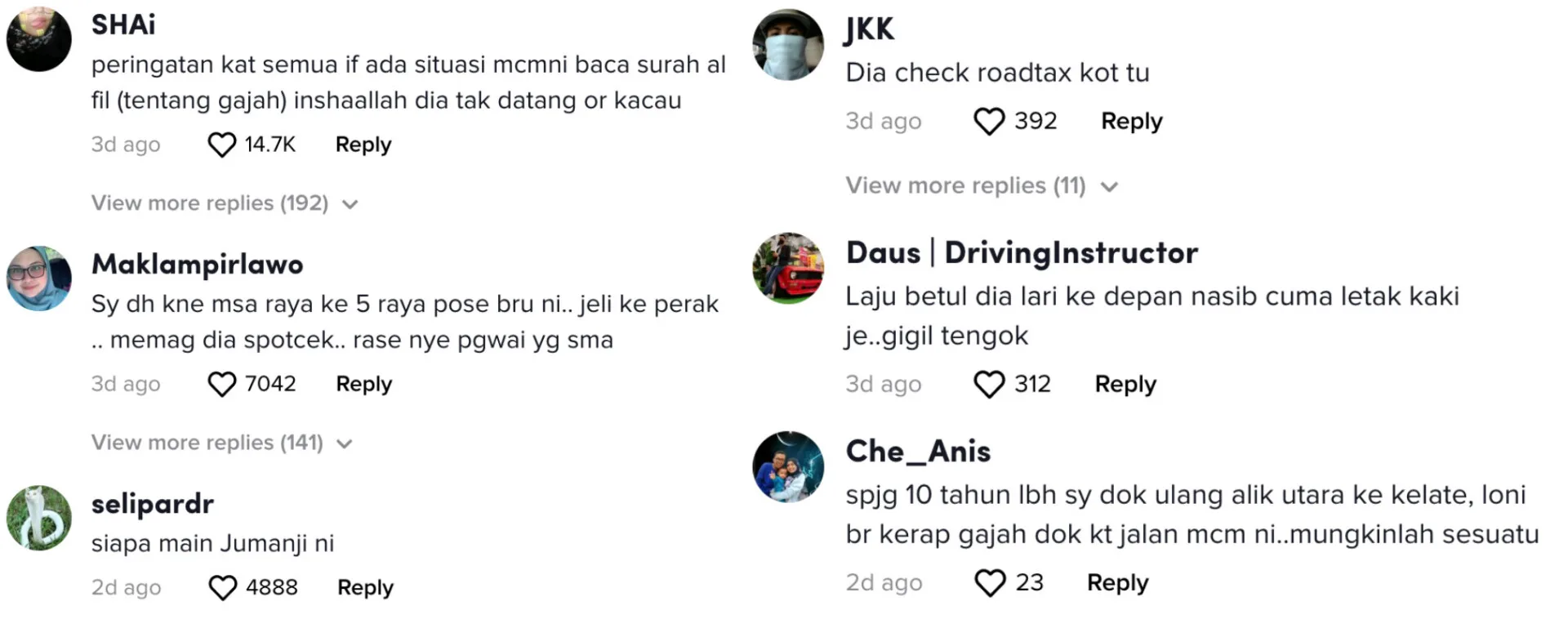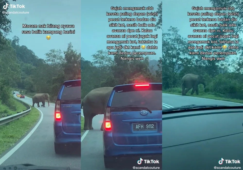 In another video posted by user @scandalcouture, she explained that the elephant behaved in such a way because the first car in the line (Perodua Viva) probably grazed it when they were making a run for it. “If the Avanza (driver) in front of us accelerated hastily too, we don’t know what will happen to us,” she added.