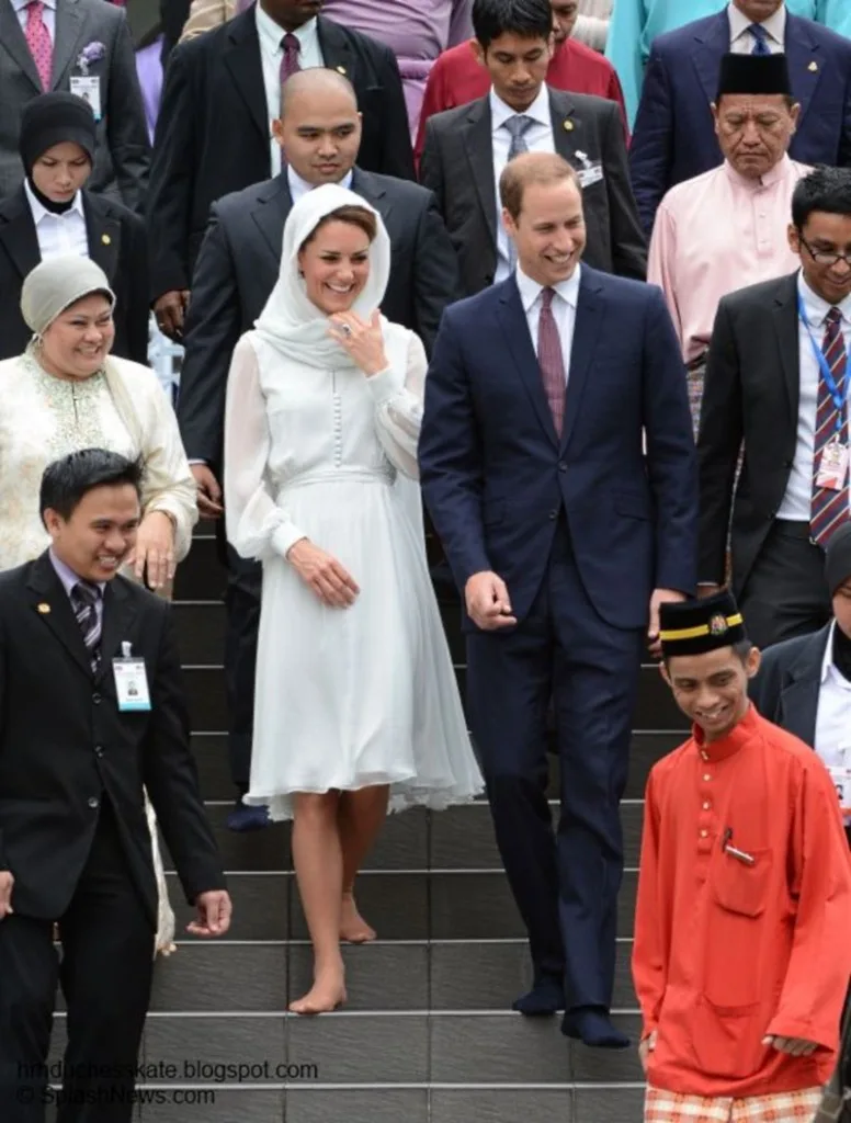 Early this morning, and with bright smiles, the beautiful couple made their first ever trip to an Islamic place of worship in Kuala Lumpur. It was a big step for the young royalties, who one day will head the Church of England.