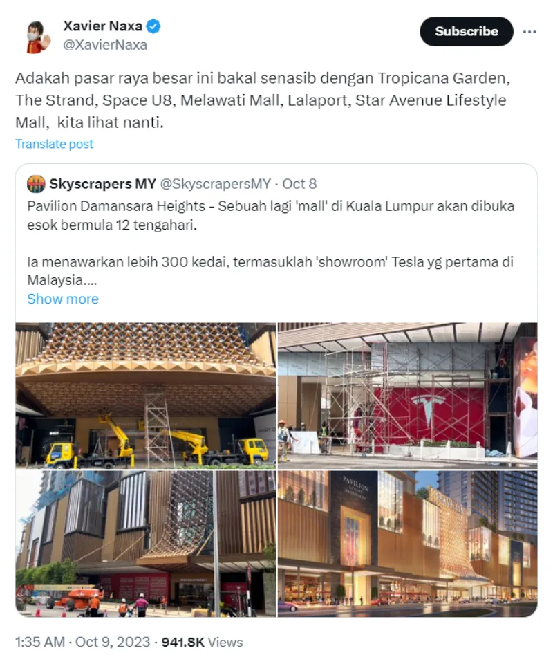 Some say that there are too many malls in the surrounding area that the new one might find it hard to attract a crowd. However, others say the mall could survive if it knows how to cater to those residing in Damansara Heights and Bangsar. Funnily, many also took the opportunity to defend Tropicana Gardens Mall and Melawati Mall, saying that the two aren’t as “dead” as Xavier assumed.