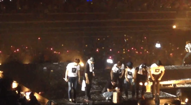 In videos of the concert posted on social media, Lee can be seen falling off the stage when he apparently missed a step while filming a video of label mate Epik High’s DJ Tukutz on a mobile device. He later re-joined the other singers for the rest of the segment.