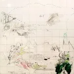 The theme of impermanence is once again manifest in Taro Izumi’s “Curos Cave”. The video sees the Nara native perform live drawings on a television monitor. As the images change, he erases his attempts and starts new ones, giving an abstract quality to the mess created on-screen.