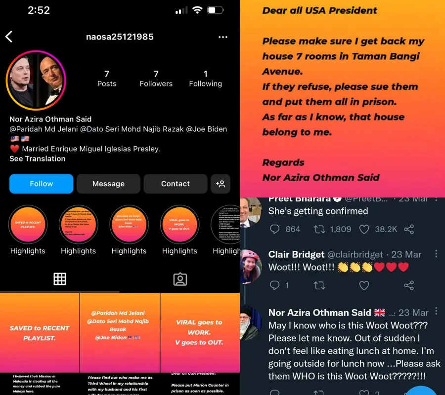 Netizens were quick to discover that Nor Azira has been posting some very questionable things on her social media (as seen above) which led many to believe that she’s either a troll account or just severely delusional. The woman once posted asking “all US Presidents” to kill specific individuals or put them in prison.