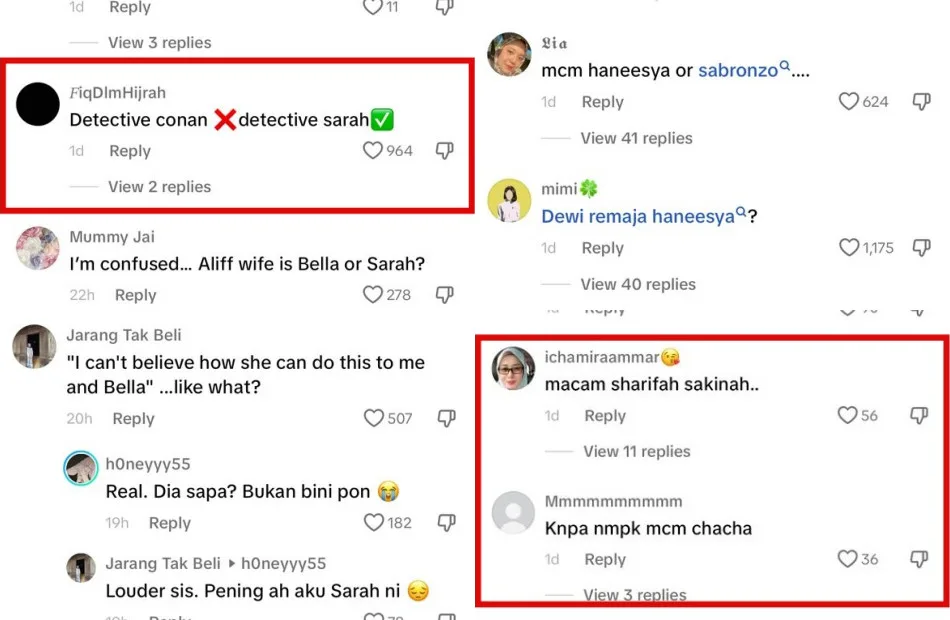 Netizens speculated on the woman’s identity and even named a few famous female celebrities in the comment section. Some also made humorous remarks about Sarah being a detective. However, others expressed their annoyance towards Sarah, saying she’s acting like she is Aliff Aziz’s wife when she’s only his mistress. Sarah’s persistent meddling in the whole Aliff Aziz, Bella and Ruhainies issue has also led to a growing dislike from the public.