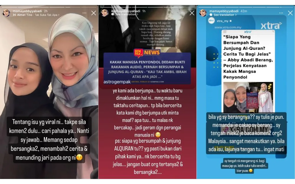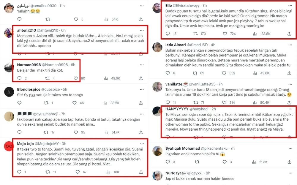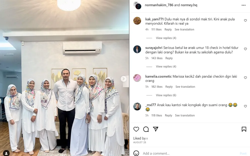 The thread has since been going viral, with many netizens expressing their shock at the revelation. Many also equated the scandal to that of Marissa’s parents, as Norman was also once caught cheating on Abby with his now-wife and Marissa’s stepmother, Memey Suhaiza.
