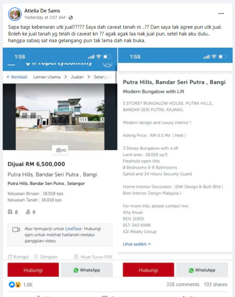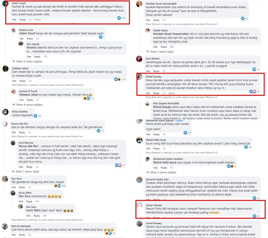 Her post gained a lot of attention from netizens, especially those who have knowledge in the real estate field. Some shared that caveated land cannot be sold within 6 years nor can it be sold without a written agreement from the individual who caveated said land.