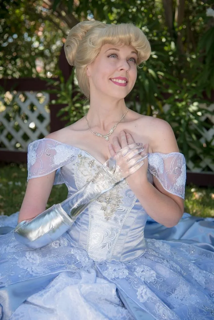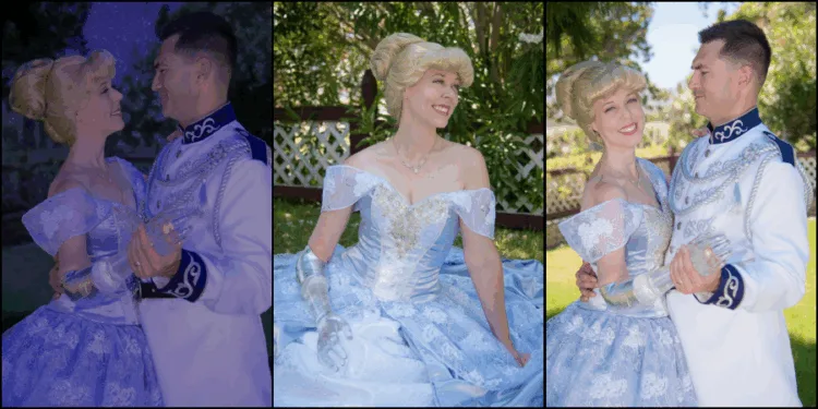 Additionally, she also hand-crafted her husband’s head to toe Prince Charming outfit – she added that she took 30-hours to finish the costume. For those who are curious, she used her feet for support while sewing, which she described the process like “having 3 arms!”.