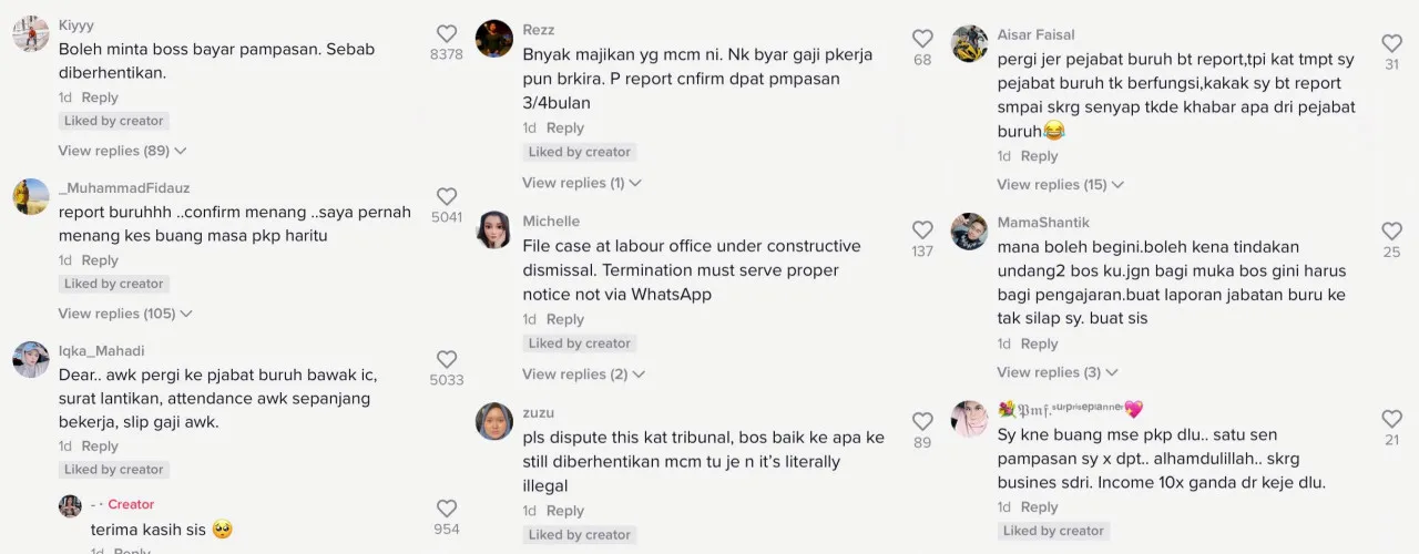 Sya’s video has since gone viral on TikTok, amassing over 3.2 million views at the time of writing (Friday, 25th March). Her post had also elicited massive reactions from local netizens online. Some also suggested the lady to immediately file a report against her boss at the labour office for not following the proper procedures.