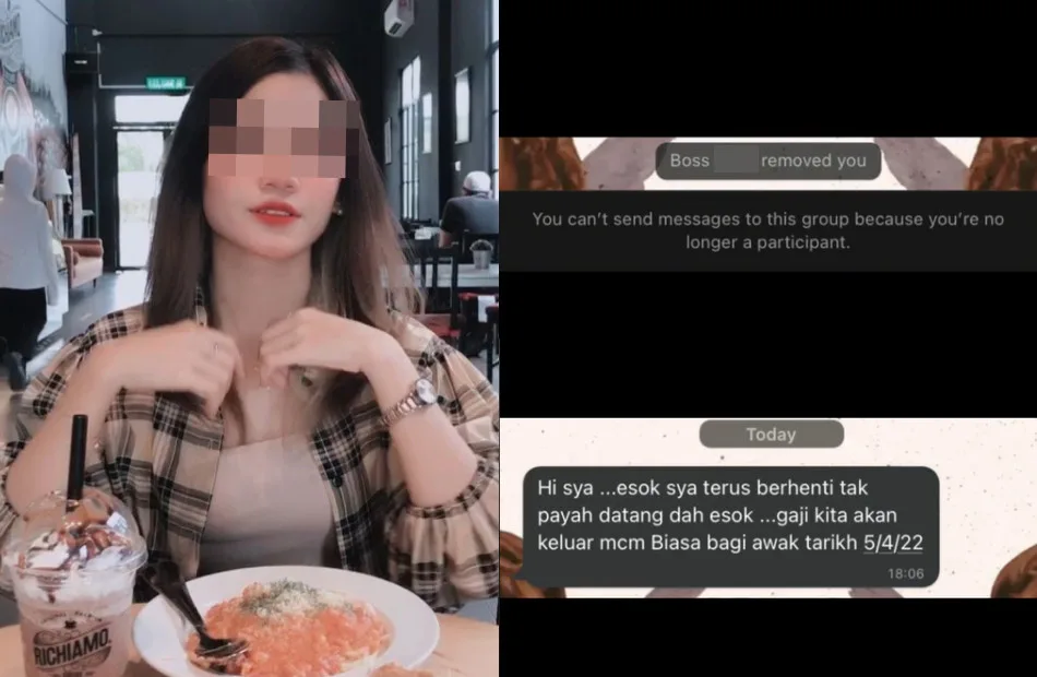 The TikTok user, Sya (@notscha_), revealed that she was dismissed without being informed by her own employer. In fact, she only knew about it after she was removed from the work WhatsApp group. She then texted her boss, Anna, to ask why she was removed. She replied, “Hi Sya, you don’t need to come to work from tomorrow onwards. We will hand you your pay like usual on 5th April 2022.”