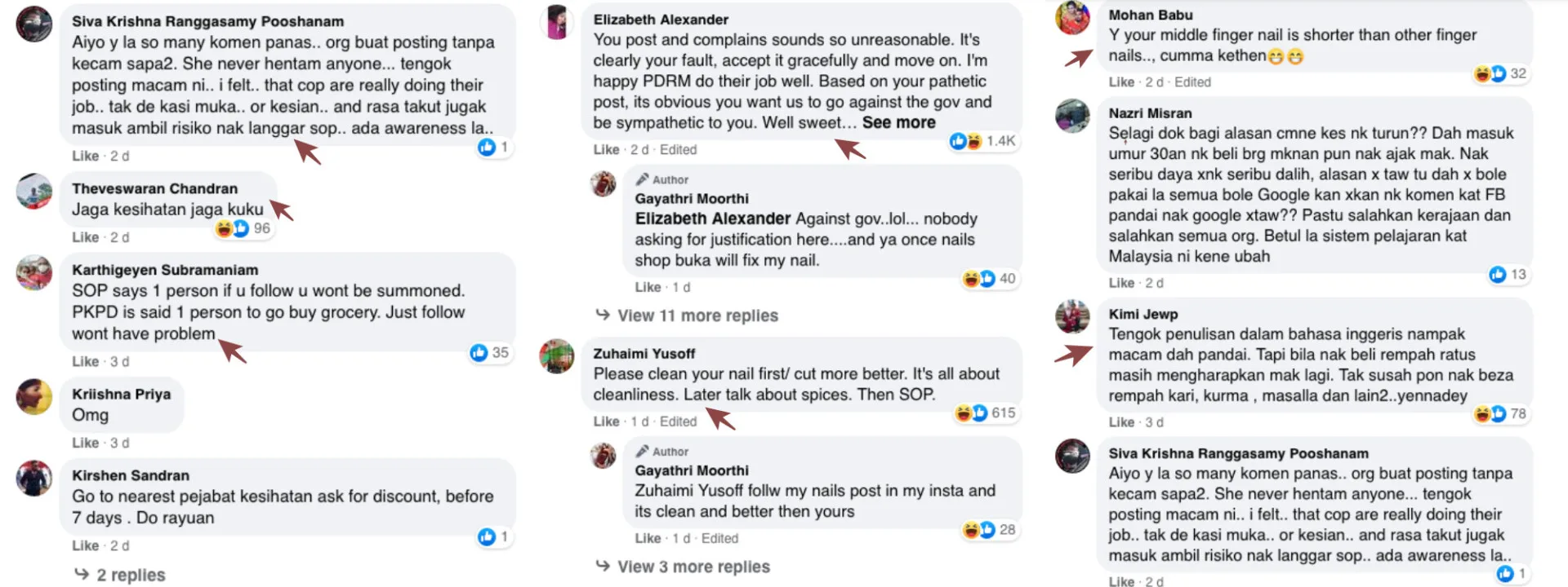 Not only that, others even went as far as to viciously poke fun at her nails hygiene. One FB user wrote, “Please clean your nails first. Or it’s better for you to cut them. It’s all about cleanliness. Later talk about spices. Then (you can talk about) SOPs”.