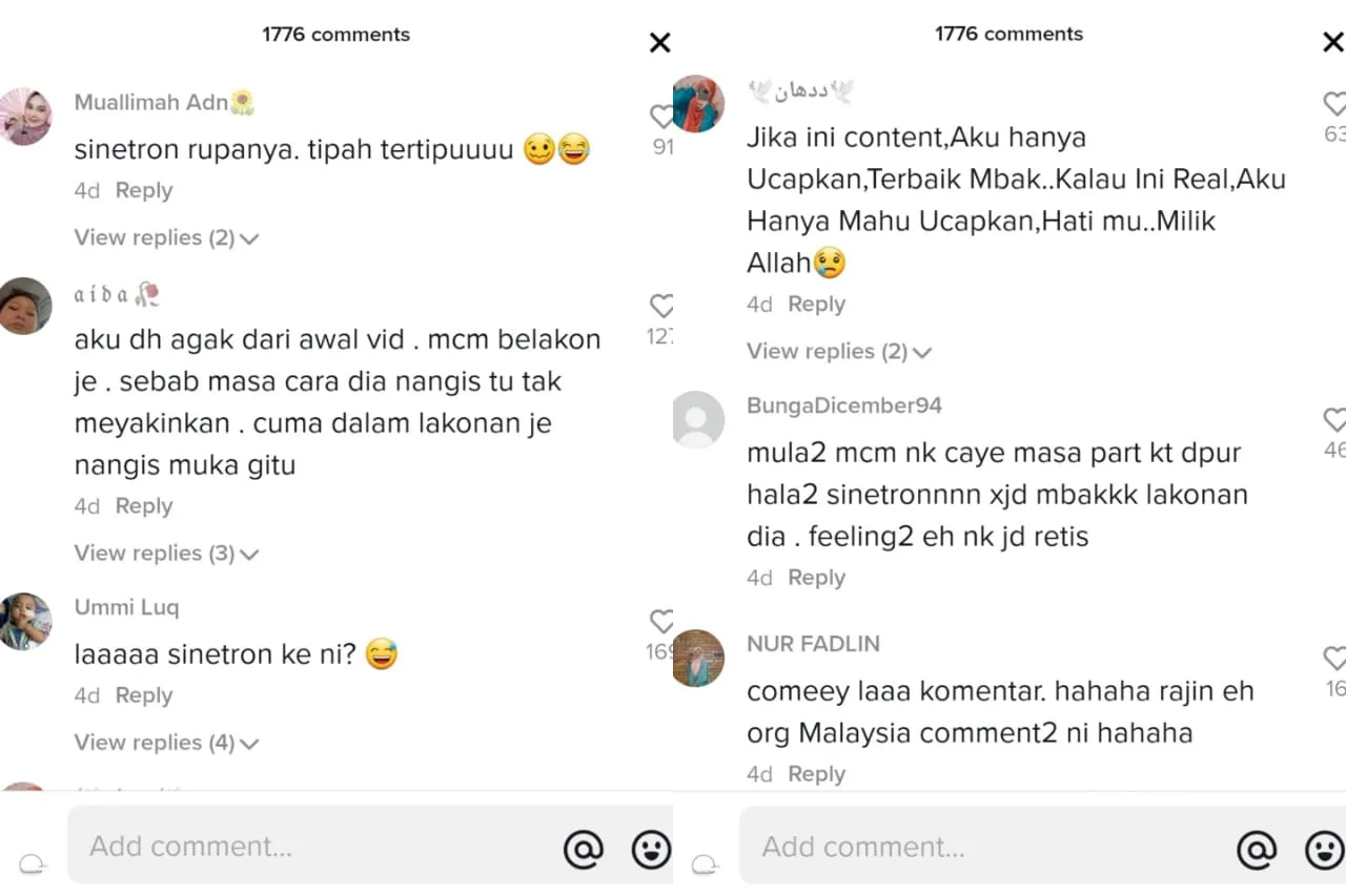 The post even garnered comments from fellow Malaysians who were also invested in the story. “I had thought so from the earlier video. It was an act. Because the way she cried is not convincing. You only cry like that in dramas,” commented one Malaysian netizen.
