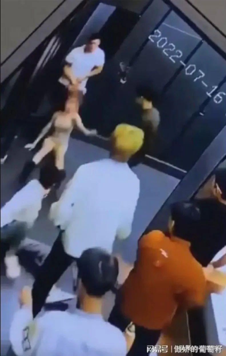 The crowd gathered while a woman in black moved forward and kicked the cubicle door just as it was being closed, as seen in the video. The man who had been dragging the woman walked out of the cubicle as the door was kicked open, and the woman hurriedly fled the scene. Ma, the man who was pulled to the ground, was contacted by Red Star News.