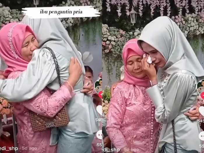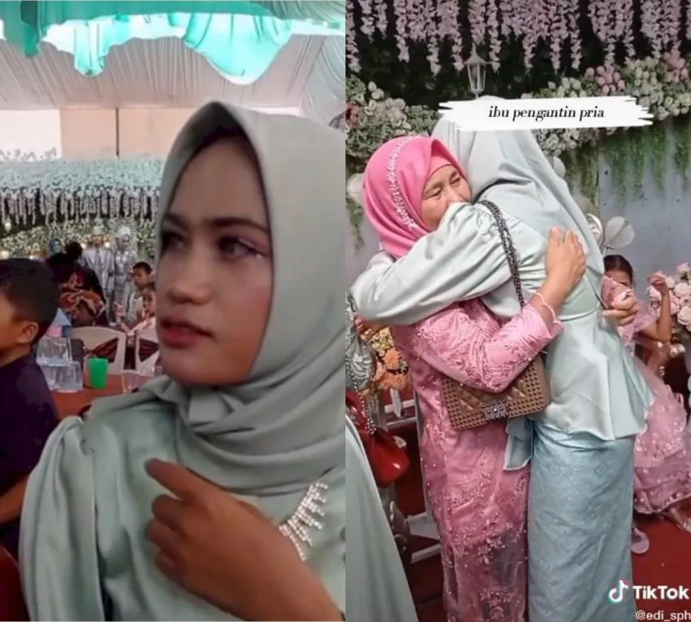 The girl, known as Vera Novita, seemed calm the moment she arrived at the event. She even made time to approach the groom’s sister and hugged her. However, the 23-year-old was unable to hold back her tears when she encountered her ex-boyfriend’s mom at the wedding dais.