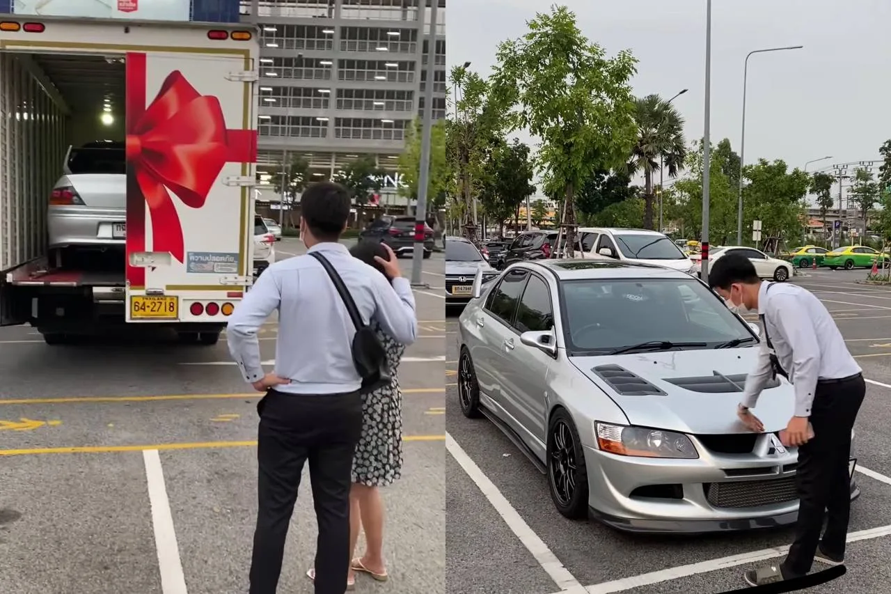 Recently, a post uploaded by Thai Japanese Domestic Market (JDM) on the 11th of February went viral among Facebook netizens. In the post, it was shown that a man was left speechless after his girlfriend gifted him a Mitsubishi Evo 8 for an early Valentine’s Day gift.