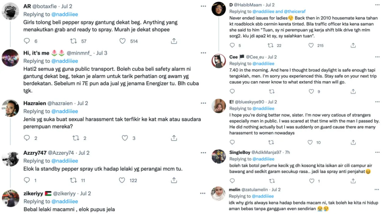 Nad commented that men should protect women instead of the other way around. She noted a few remarks from men on why she didn’t just scream for help and said, “I don’t know why I should explain because you will never understand. I would rather be run over by the train than face such peril..” Additionally, RapidKL contacted her and was notified of this incident through Twitter.