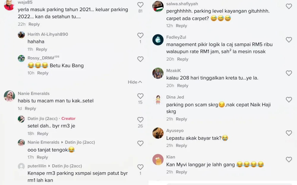 Many netizens were amused by the incident and took to the comments section to share their thoughts. Some asked if the management had laid out a red carpet for charging RM5811. A TikTok user commented that perhaps the management assumed she had left her Myvi in the building since last year.