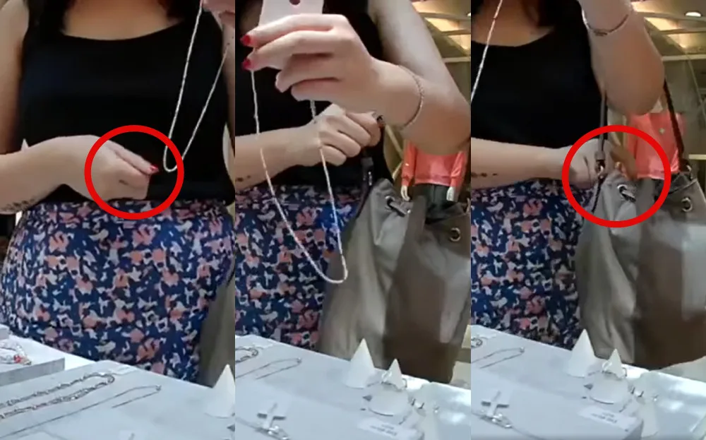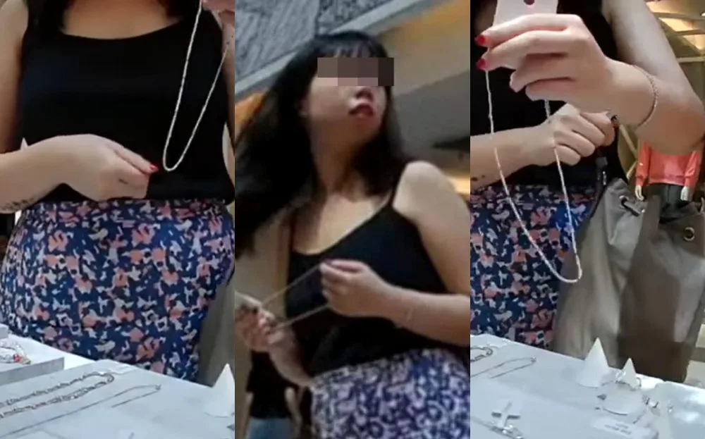 According to the videos, the lady had been browsing a jewellery stall in Publika. After trying on a few pieces, she evidently found one she liked; a silver ring. However, it seems she wasn’t willing to pay for it. The woman sneakily hid it in her palm after taking it off, then slid it into her bag when she assumed no one was looking.