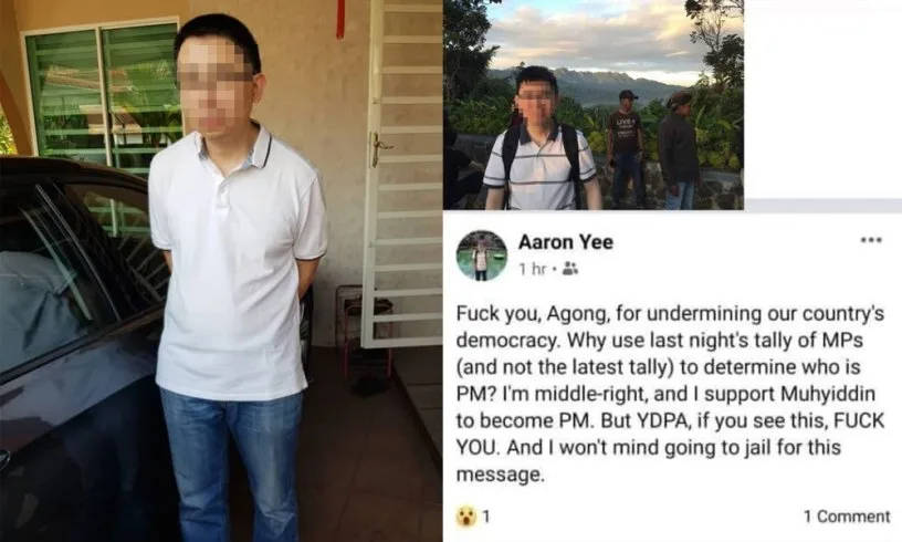 Earlier this week, a 35-year-old man from Perak got into trouble after he used the f-bomb against Yang di-Pertuan Agong, Al-Sultan Abdullah Ri’ayatuddin Al-Mustafa Billah Shah. In his rant, Aaron Yee accused Agong of “undermining our country’s democracy”. He also boldly wrote, “And I won’t mind going to jail for this message”.